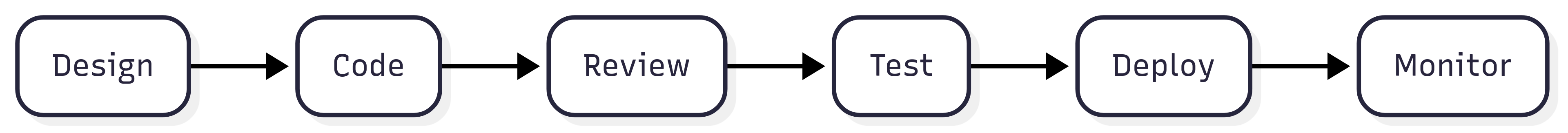 Old workflow: Design → Code → Review → Test → Deploy → Monitor.
